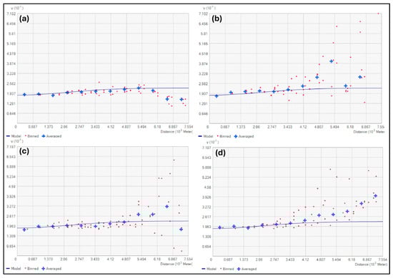 Directional empirical variograms of the SWL; (a) N-S, (b) E-W, (c) NW-SE, and (d) NE-SW.