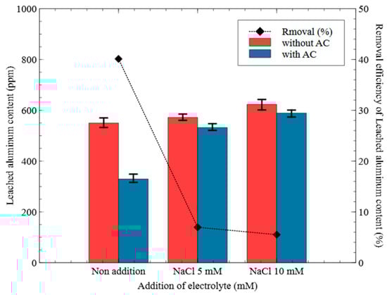 Effect of activated carbon on the leached aluminum content (Al electrode, NaCl addition, 15 V).