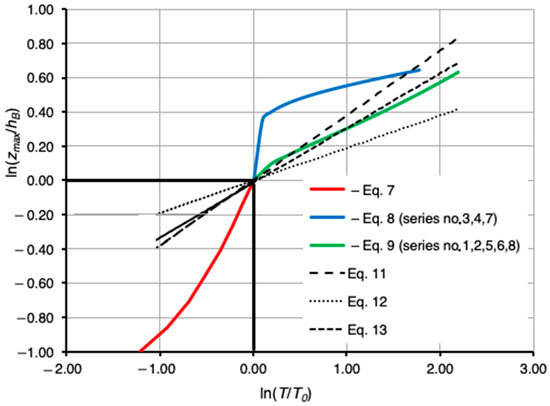 For the ratio (T/To) ≤ 1.0, the scour curves showed a consistent trend, indicating that the scour process progressed uniformly across all tested scenarios. This uniformity allowed the process to be described by a single equation (Equation (7)) applicable to all measurements where scour occurred, valid for: