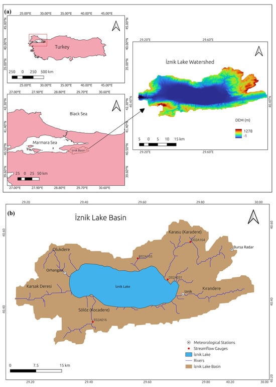 Land use management of watersheds is crucial and can profoundly impact the hydrologic cycle and water supply. Türkiye is one of the countries experiencing water scarcity due to rapid population growth, industrialization, and agricultural activities, particularly in the Marmara Region, which includes the İznik Lake Watershed [1,2]. İznik Lake, the biggest lake in the Marmara Region and the fifth largest freshwater lake in Türkiye, has been facing significant challenges, including water pollution and a marked decline in water levels in recent years, primarily due to global warming and human activity in the basin [3,4,5].