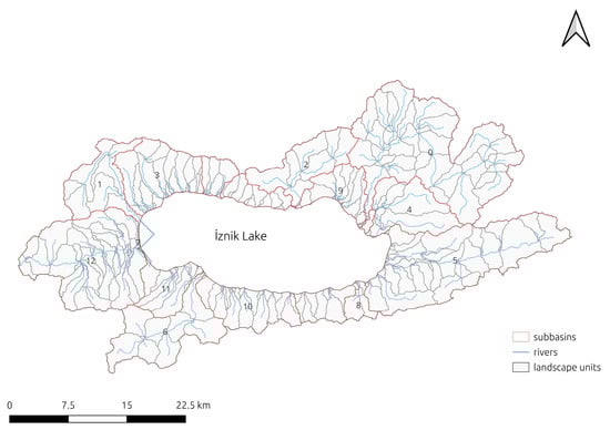 İznik Lake Watershed sub-basins, rivers, and LSUs.