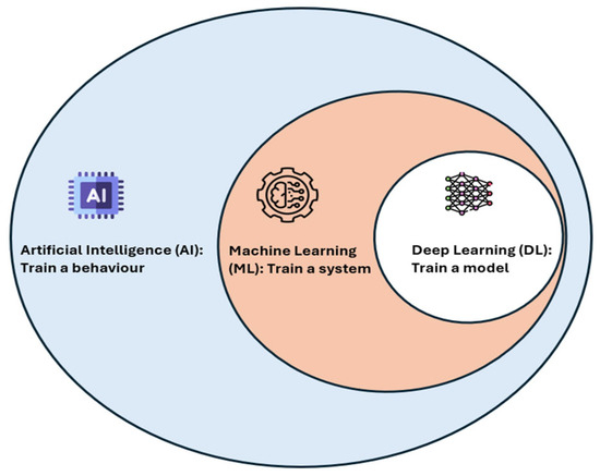 As shown in Figure 8, Artificial Intelligence (AI) includes key subfields such as Machine Learning (ML) and Deep Learning (DL), which have been widely adopted in water system management [102,103,104,105,106]. ML focuses on algorithms that learn patterns from data to make predictions or decisions without explicit programming [103,106]. DL, as a subset of ML, uses multi-layered neural networks inspired by the human brain to process large and complex datasets [105,107,108]. ML is typically divided into supervised, unsupervised, semi-supervised, and reinforcement learning, each with distinct roles in classification, clustering, and control tasks [106,109]. RL is suited to dynamic decision-making problems, where an agent learns to act within an environment to maximise cumulative rewards [110]. DRL builds on RL by integrating deep neural networks to handle large state and action spaces and can be categorised into value-based, policy-based, and actor–critic approaches [106,111].