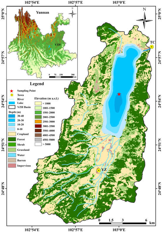 Land use map of catchment of Lake Yangzong and location of YZH–1 core. (URL: https://zenodo.org/records/8176941; accessed on 1 December 2022).
