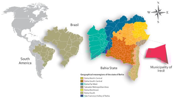 Location of the municipality of Irecê in the northern region of the state of Bahia, Brazil.