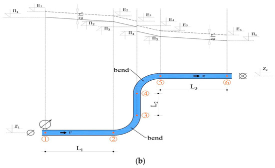(a) Determination of the discharge value based on the measured pressures, (b) Energy loss, i.e., pressure drop on the pipeline of constant diameter with two bends for a known discharge Q.