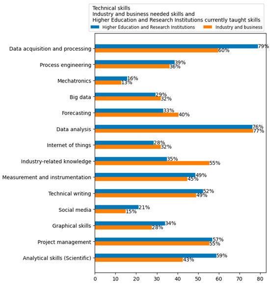Technical skills needed by the industry and business sector and taught skills at higher education and research institutions.