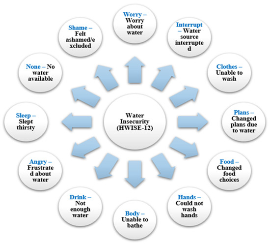 The 12 dimensions of the Household Water Insecurity Experience (HWISE) Scale.