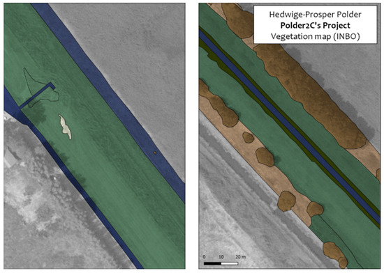 - Vandevoorde, B.; Van Lierop, F. T0-Bepaling van de Dijkvegetatie Hedwige-Prosperpolder (Datarapport); Instituut voor Natuur- en Bosonderzoek: Brussels, Belgium, 2021. [Google Scholar] [CrossRef]