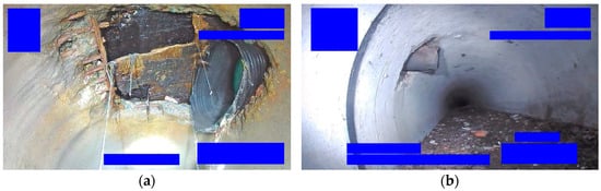 Sewers are essential urban infrastructure, playing a critical role in public sanitation and stormwater management. However, the deterioration of aged sewers has emerged as a significant concern in many countries []. The main causes of sewer deterioration include long-term degradation of material properties, poor construction, root intrusion, heavy traffic loads, structural deformation due to ground settlement, infiltration of groundwater, and crown corrosion from bio-chemical reaction [,,]. These deteriorations can lead to defects such as cracks, fractures, and joint dislocations in sewer pipelines, which may ultimately cause severe issues such as reduced flow capacity, flooding, and sinkholes. Such problems can be prevented by determining the timing for sewer rehabilitation in advance through regular condition assessments. Sewer condition assessments are conducted using various evaluation protocols like the pipeline assessment certification program (PACP) developed by the National Association of Sewer Service Companies, commonly known as NASSCO [,]. After inspection, a condition grade is assigned to each sewer segment based on the protocol, which in turn determines the priority for rehabilitation. These condition assessment protocols generally consist of the following steps: collecting sewer information, identifying and assessing defect severity, and generating an evaluation report [,,].