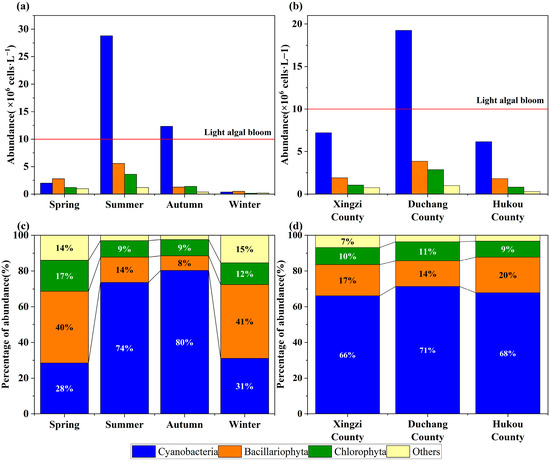 - Xiong, L.; Fang, S.; Li, K.; Wu, Z.; Min, X.; Liu, J.; Xing, J.; Deng, Y.; Guo, Y. Temporal distribution patterns of phytoplankton and their drivers in Lake Poyang (China)–A monthly study from 2011 to 2019. Ecol. Indic. 2021, 133, 108435. [Google Scholar] [CrossRef]