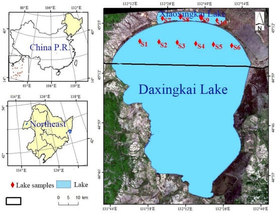 The sampling sites were strategically positioned based on geographical constraints, geopolitical boundaries, and environmental monitoring principles. For Xiaoxingkai Lake—entirely within China’s territory, and with a smaller surface area—four equidistant sampling sites were deployed horizontally along its latitudinal central zone to avoid shoreline pollution interference while covering the main water body. For the Chinese sector of transboundary Daxingkai Lake (characterized by a northwestern zonal distribution and larger surface area), six equidistant sites were arranged east–west along its north–south central axis. This design minimized boundary-related operational constraints and shoreline pollution impacts, ensuring representative coverage of China’s jurisdictional waters. The spatial configuration guarantees that monitored pollution levels reflect regional aquatic environmental conditions.