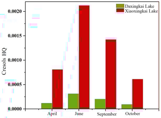 HQ values for cresols in Daxingkai and Xiaoxingkai Lakes.