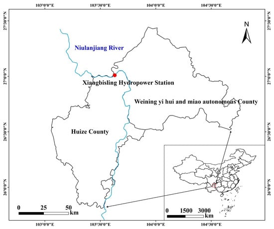 The XB Hydropower Station, located in the southwest of China, is a roller-compacted concrete arch dam primarily designed for power generation, with a maximum height of 141.5 m and an installed capacity of 240 MW. The crest elevation of the arch dam is 1409.50 m, with a maximum height of 141.50 m, a crest length of 434.46 m, a crest width of 8.00 m, and a thickness at the base ranging from 35 to 38 m. The location map is shown in Figure 14.