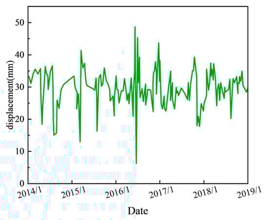 A large number of monitoring instruments have been installed in the dam body, dam foundation, downstream of the dam, and on both banks to monitor the safe operation of the dam. This study selects displacement and seepage monitoring data as the research objects to verify the effectiveness of the anomaly identification model based on the MZ criterion. The research data, as shown in Figure 5, covers the monitoring period from 2014 to 2018.