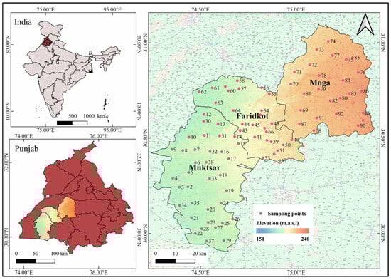 - CGWB. Ground Water Information Booklet Moga District, Punjab; Central Ground Water Board: Chandigarh, India, 2013; pp. 1–17. Available online: https://www.cgwb.gov.in/old_website/District_Profile/Punjab/Moga.pdf (accessed on 26 June 2025).