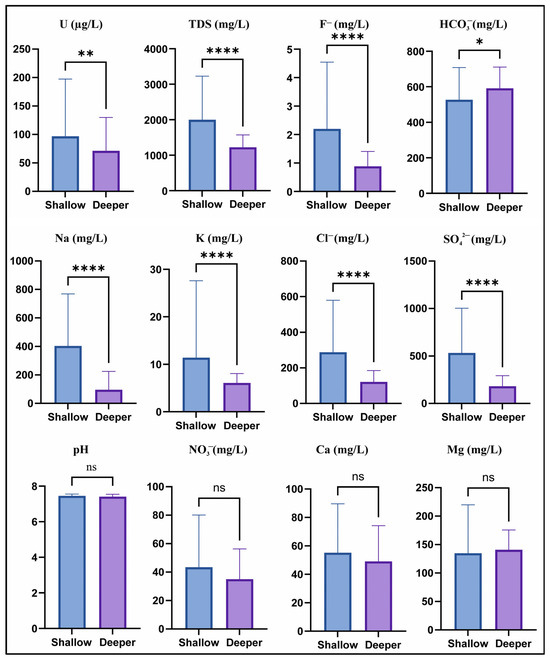 3.1. Distribution of Groundwater Quality Parameters in Shallow and Deeper Groundwater