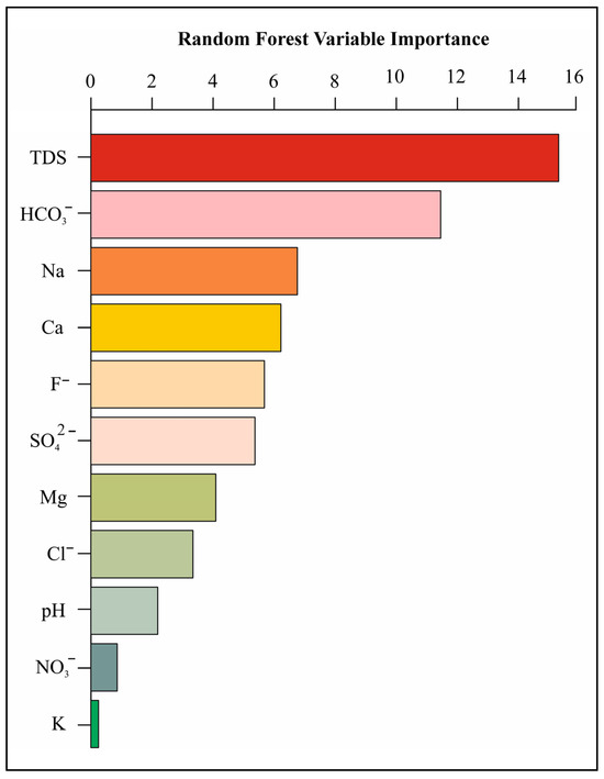 - Rosecrans, C.Z.; Belitz, K.; Ransom, K.M.; Stackelberg, P.E.; McMahon, P.B. Predicting Regional Fluoride Concentrations at Public and Domestic Supply Depths in Basin-Fill Aquifers of the Western United States Using a Random Forest Model. Sci. Total Environ. 2022, 806, 150960. [Google Scholar] [CrossRef]