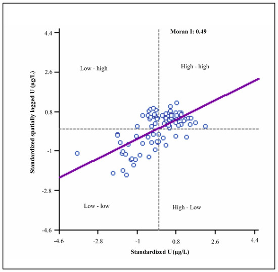 - High–high (HH): Areas with high U levels that are surrounded by similarly high concentrations.