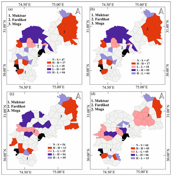 2.7. Analysis of Spatial Clusters and Spatial Outliers
