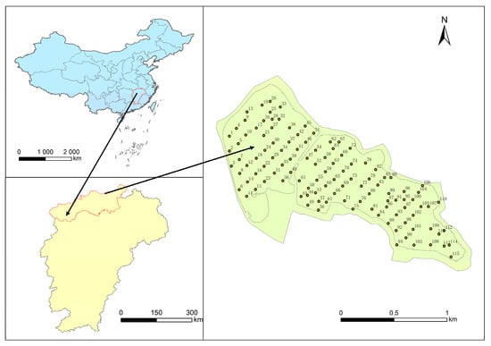 All sample tests are carried out in laboratories with China Metrology Accreditation qualification and are operated by the staff therein. For every 10 out of the 115 sampling points, one point is randomly selected for sampling twice as parallel samples. One standard sample is measured among every twenty samples tested, and one quartz sand sample is measured as a blank sample among every ten samples to ensure the accuracy of the samples. Each sample is subjected to three parallel determinations, and the results are expressed as the average of the three parallel tests. The Shimadzu AA-7000 (Shimadzu Corporation, Kyoto, Japan) was used for the detection of Pb, Cu, Zn, Ni, Cd, and Cr contents. The Haiguang AFS-9750 (Haiguang Instrument Corporation, Beijing, China) was used for the detection of Hg and As contents.