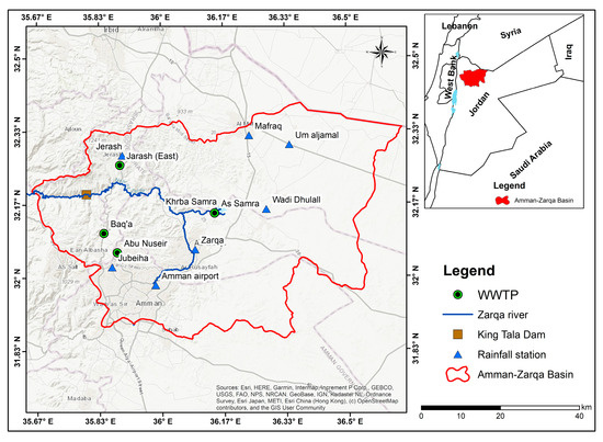 - Amdar, N.; Seyoum, S.; Al-Bakri, J.; Rutten, M.; Jewitt, G.; Mul, M. Developing a water budget for the Amman-Zarqa basin using water accounting plus and the pixel-based soil water balance model. Model Earth Syst. Environ. 2024, 10, 6997–7017. [Google Scholar] [CrossRef]
