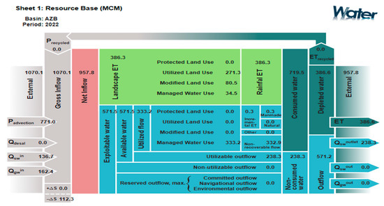 WA+ resource base sheet (MCM) after correction of ET for irrigated lands of AZB for the 2022 hydrological year.