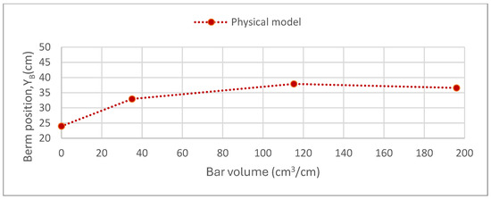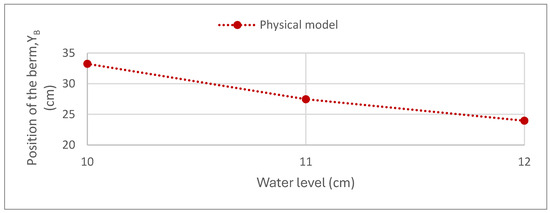 In this regard, Figure 17 shows the position of the final berm (base of the dune slope and top of the beach slope) as a function of the water level. Thus, the physical model results are situated between 23.97 cm and 33.25 cm.