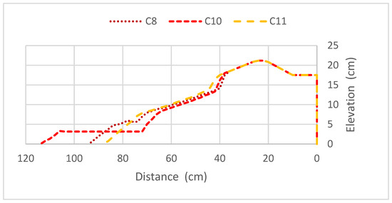 Profile morphology at the end of the test, for scenarios C8, C10, and C11.