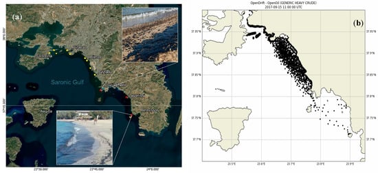 - Makatounis, P.E.Z.; Stamou, A.I.; Ventikos, N.P. Modeling the Agia Zoni II tanker oil spill in Saronic Gulf, Greece. Mar. Pollut. Bull. 2023, 194 Pt B, 115275. [Google Scholar] [CrossRef]