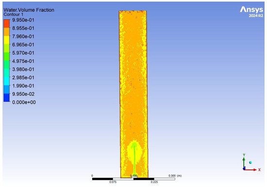 The results of a CFD simulation showing the water volume fraction distributed throughout an aerobic granular sludge reactor.