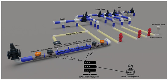 Joseph et al. [4] proposed a framework for the development of an IWN with the integration layers including sensing layer, communication layer, water system and operation layer, and application and prediction layer. The framework for an IWN is important because it enables more sustainable, efficient, and resilient urban water systems by integrating advanced technologies for improved management, resource optimisation, and informed decision making. Joseph et al. [5] provides a comprehensive overview of software- and hardware-based technologies for leak and burst detection in water pipeline networks. In particular, Joseph et al. [5] analysed and synthesised findings from the literature, including numerous studies to compare different leak detection methods based on factors like detection principle, sensitivity, accuracy, reliability, and ease of use. The efficacy of techniques for detecting anomalies, particularly related to pipe failures, leaks, and bursts, focusing on a case study in the Sunbury region of Victoria, Australia, was investigated by Joseph et al. (2024) [6]. This study utilised SCADA sensor technology to extract hydraulic characteristics and developed algorithms for leak and burst detection. Both logic-based and machine learning approaches were employed. Logic-based algorithms excelled at capturing straightforward anomalies, while machine learning techniques enhanced detection by learning from historical data and adapting to changing conditions.