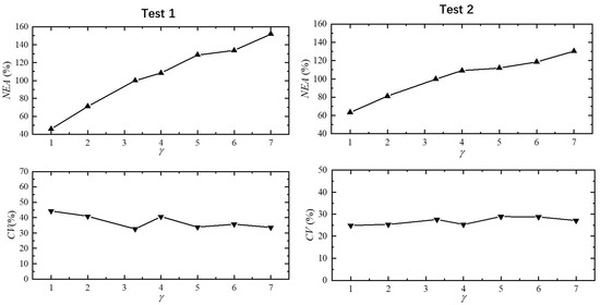 The normalized parameter is employed to quantitatively evaluate deviations in overtopping discharge related to various spectral peak factors. Using the spectral peak factor as a baseline, the Normalized Ensemble Averages () are articulated as follows: