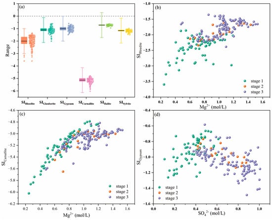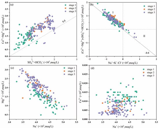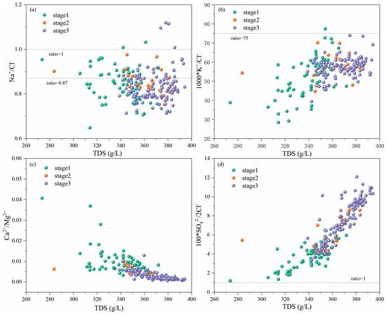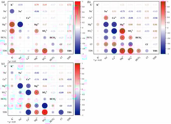 - The ionic composition of the Luobei phreatic brine was predominantly characterized by Na+ and Cl−, with SO42−, Mg2+, and K+ following in sequence. During the mining process, the Mg2+ concentrations have been gradually increasing, and the correlation coefficient between Mg2+ and total dissolved solids (TDS) has changed significantly. This indicated that the content of Mg2+ has been markedly influenced by environmental changes. Consequently, Mg2+ was identified as a crucial indicator for analyzing hydrochemical evolution.