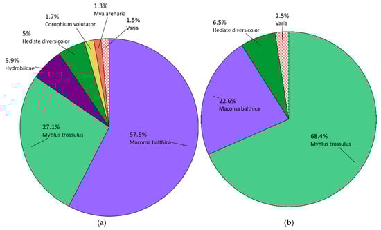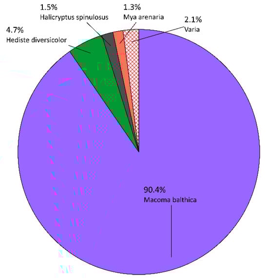 - Warzocha, J. Classification and structure of macrofaunal communities in the southern Baltic. Arch. Fish. Mar. Res. 1995, 42, 225–237. [Google Scholar]