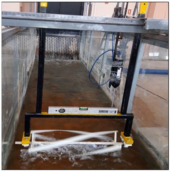 21]. Nevertheless, numerical results must be validated through physical measurements. Experimental studies conducted in open water channels using techniques such as Acoustic Doppler Velocimetry (ADV) and Particle Image Velocimetry (PIV) provide high-resolution velocity data, which are essential for capturing the three-dimensional wake structure and for benchmarking simulation results [
