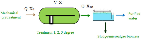 - Ruiz, J.; Álvarez-Díaz, P.D.; Arbib, Z.; Garrido-Pérez, G.; Barragán, J.; Perales, J.A. Performance of a flat panel reactor in the continuous culture of microalgae in urban wastewater: Prediction from a batch experiment. Biores.Technol. 2013, 127, 456–463. [Google Scholar] [CrossRef]