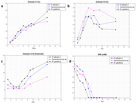 3.1. Nutrient Uptake and Intracellular Carbon and Nitrogen Composition