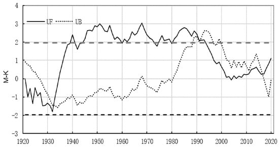 Mutation test for the return runoff series from 1921 to 2020.