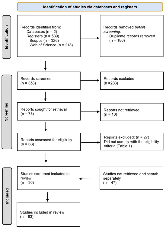 - Page, M.J.; McKenzie, J.E.; Bossuyt, P.M.; Boutron, I.; Hoffmann, T.C.; Mulrow, C.D.; Shamseer, L.; Tetzlaff, J.M.; Akl, E.A.; Brennan, S.E.; et al. The PRISMA 2020 statement: An updated guideline for reporting systematic reviews. BMJ 2021, 372, n71. [Google Scholar] [CrossRef]