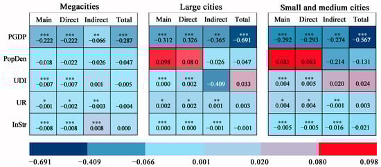 Spatial effect decomposition of EDL on SDI in different-sized cities.