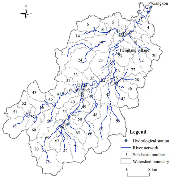 The results of the river network and sub-basin division in the Xitiaoxi River Basin.