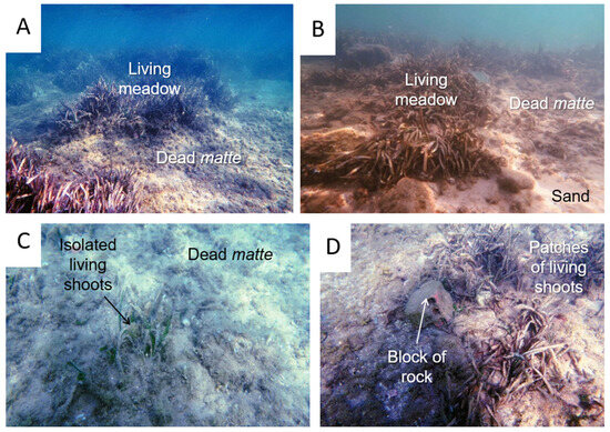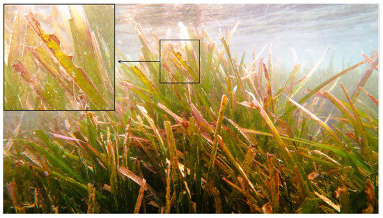 The seagrass Posidonia oceanica (Linnaeus) Delile is endemic to the Mediterranean Sea, where it constitutes extensive meadows from the sea surface down to 30–40 m depth [1,2]. The P. oceanica ecosystem provides ecological goods and ecosystem services of paramount importance [3,4,5,6,7,8,9,10,11,12,13,14], a feature shared by most seagrass ecosystems worldwide [15,16]. For these reasons, it has been the subject of thousands of scientific studies (e.g., [17,18,19,20,21,22,23,24,25,26]).