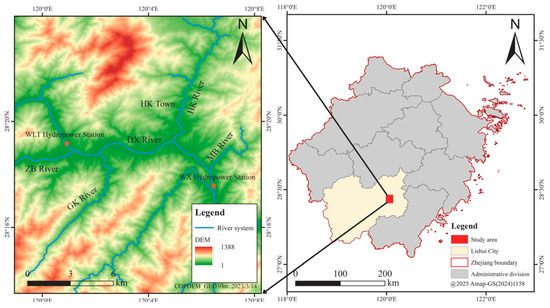 The study area is located in Zhejiang Province including two major rivers: the Daxi (DX) River and the Haikou (HK) River. The geographical distributions of these rivers are illustrated in