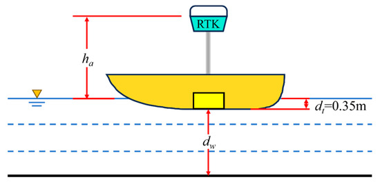 The unmanned vessel is equipped with RTK and a depth sounder. It uses RTK to obtain position information and the depth sounder to obtain water depth information. The following formula is used: