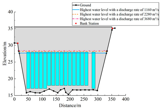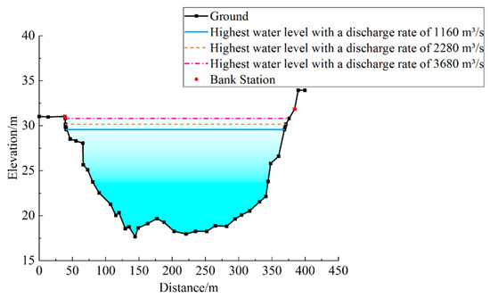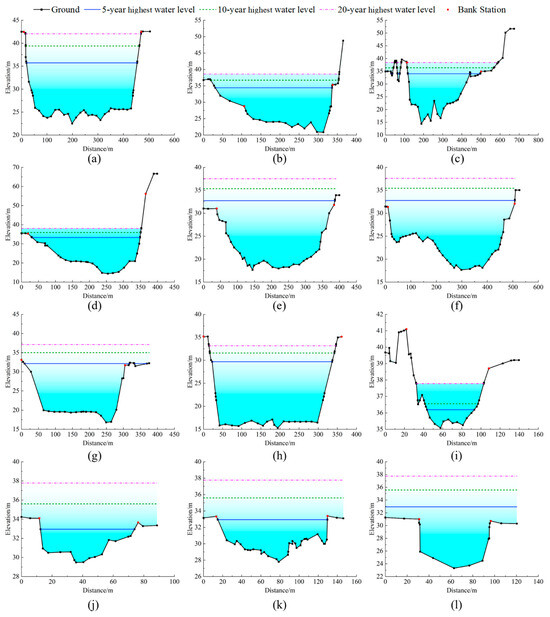 Table 6. To thoroughly analyze water level variations at compound cross-sections, representative river sections were specifically selected. The corresponding water level changes under different flood frequencies are illustrated in