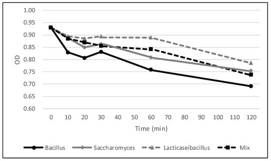 Lacticaseibacillus-derived (0.68). The average OD after 120 min was as follows: