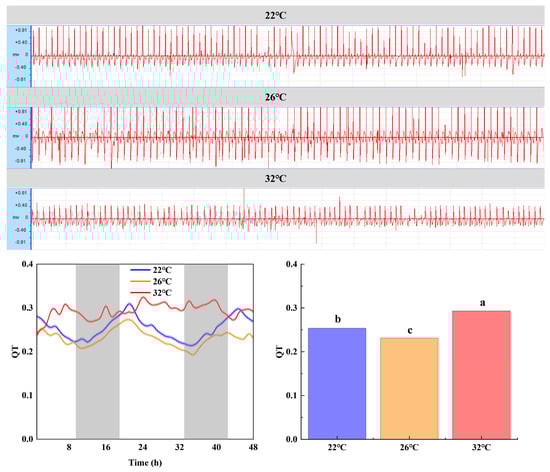 Differences among the temperature groups were analyzed using one-way ANOVA followed by Tukey’s HSD test for multiple comparisons (α = 0.05). Time-series data (circadian rhythms) were evaluated via repeated-measures ANOVA. Data processing was conducted using MATLAB R2014b, visualization was performed with Origin2024, and the calculation of H was implemented using Python 3.9.