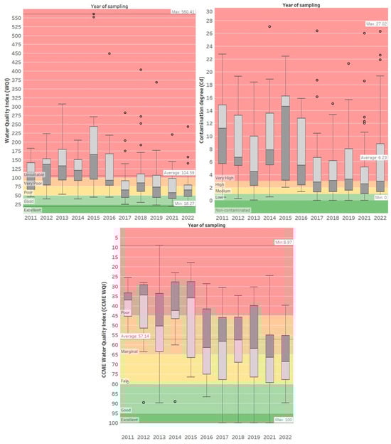Water quality index values between 2011 and 2022.
