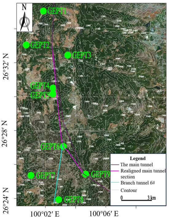 - Liu, N.; Pei, J.; Cao, C.; Liu, X.; Huang, Y.; Mei, G. Geological investigation and treatment measures against water inrush hazard in karst tunnels: A case study in Guiyang, southwest China. Tunn. Undergr. Space Technol. 2022, 124, 104491. [Google Scholar] [CrossRef]