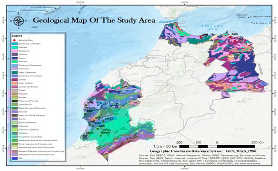 Groundwater is a key freshwater resource, particularly in arid and semi-arid regions where surface water is not available or is highly seasonal. It meets the drinking water needs of about half the world’s population and supports up to 40% of irrigated agriculture, besides playing a vital role in industrial development [1]. In climatic variability and prolonged droughts, where surface water does not bring sufficient sustenance, groundwater serves as a buffer against scarcity in many instances wherein such supply is the only source that can be relied upon [2,3]. This dependency becomes very imperative for countries in the Mediterranean region. Morocco, for instance, has recently been impacted significantly by climate change, as evidenced by reduced rainfall, rising temperatures, and increasing water scarcity. The country has faced increasing challenges over the past few decades. Water scarcity, population growth, and the expansion of agricultural and industrial activities have caused a sustained demand for groundwater resources in the country’s arid and semi-arid areas [4,5].